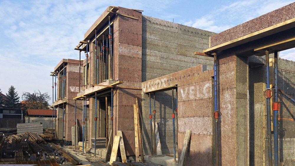 Stavbu velmi usnadní štěpkocementové stěnové moduly zhotovené na výšku podlaží, hotová bednění pro sloupy nebo pro věnce. Dřevo je známo svou vysokou tepelnou izolací a zdravým komfortem bydlení a tyto přednosti má i štěpkocement jako masivní stavební materiál. Ve spojení s jádrem z betonu akumulujícím teplo jsou splněny všechny stavebně-fyzikální požadavky. Osazování štěpkocementových desek bez použití malty a bez ložných spár zamezuje vzniku nechtěných tepelných mostů.
