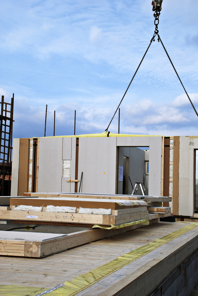 V praxi to znamená, že si vyberete podle katalogu projekt (často s možností individuálních úprav), jehož komponenty pak dodavatel dopraví na staveniště, kde je smontuje. Základním benefitem je tedy výroba a kompletace celých částí domu na továrních linkách s následným sestavením na staveništi. Tím se docílí největší výhody, kterou tento způsob výstavby poskytuje – úspory času. Jde o velkoplošné stěnové dílce, stropní panely, střešní komponenty a schodiště atd. Většina výrobců k tomu nabízí možnosti volby různého stupně dohotovení. Na vás většinou zbývá zajistit si zhotovení základové desky.