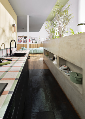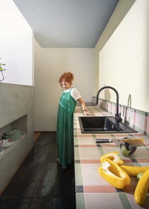 Prostory domu jsou definovány skloubením materiálů – neochvějného a moderního betonu, teplého a světlého dřeva a stěn, které sama Serena proměňuje v barevné bloky pomocí barev Wilson&Morris. Nesourodé kombinace díky nezaměnitelnému rukopisu, který je pro návrhy Sereny typický, vytvářejí z interiéru prostor, kde se setkávají současné trendy spolu s tradičním designem, a dohromady tak vytvářejí harmonický domov plný života.