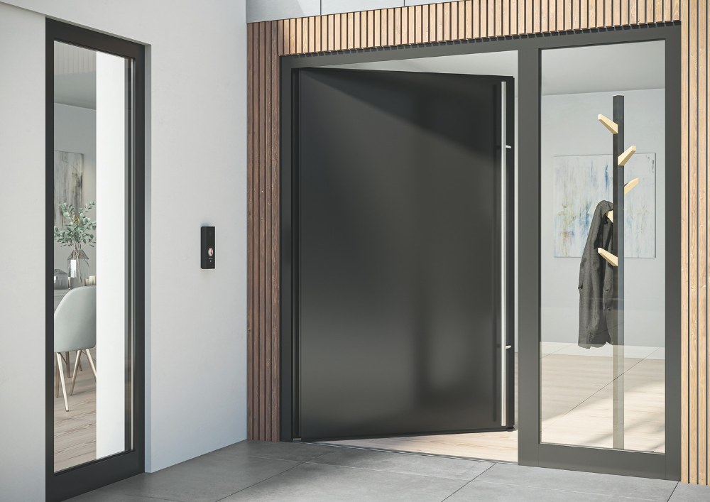 Dveřní systém s bezbariérovým nulovým prahem nabízí také odolnost proti vloupání až do stupně RC 2. Doplňkový automatický bočně zavěšený pohon dveří vyrovnává ovládací síly a usnadňuje tak otevření, aniž by bylo nutné dveře ručně ovládat. Nejen hliníkové dveřní systémy, ale i plastové systémy Schüco fungují s impozantním řešením v podobě bezbariérového zapuštěného prahu. Ten lze použít u všech jednokřídlých vchodových dveří systému Schüco LivIng, které se otevírají směrem dovnitř. Speciálně vyvinuté krycí lišty pro dveřní jednotky se zapuštěným prahem a automatické prahové těsnění zajišťují hladký přechod, odolnost a optimální těsnost dveří.
