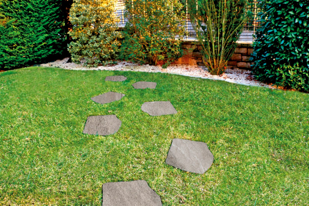 Další možností je pokládka nášlapných kamenů. „Rozmyslete si, jak kameny rozmístit, vyznačte si do trávníku jejich obrys a trávník vyřízněte. Pak osaďte jednotlivé kusy dlažby. Měly by být asi 1 cm nad úrovní stávajícího trávníku, aby vám do něj časem nezarostly. Samotné zaplnění vegetačních otvorů probíhá stejně,“ uzavírá odborník David Benda z projektových marketů Hornbach.