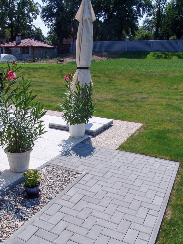 Klasická, vysoce ekologická betonová venkovní dlažba i zatravňovací rošty (nazývané také zatravňovací plástve) umožňují řešit současně zpevnění i zatravnění plochy s velkým podílem zeleně. „Zatravňovací tvárnice lze použít i ke zpevnění svahů s mírným sklonem. Pomáhá k rychlejšímu odvodnění nadměrně vlhkých pozemků, které jsou více chráněny před erozí. Díky speciálnímu výřezu lze betonové tvarovky zasadit naprosto přesně jednu k druhé,“ doplňuje David Benda.