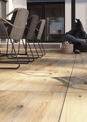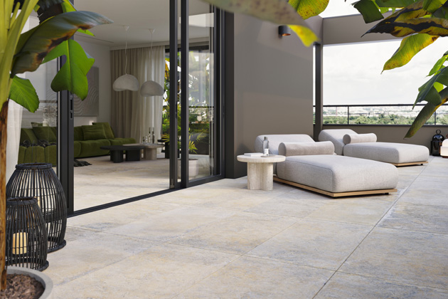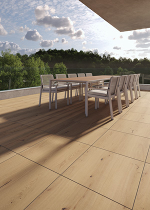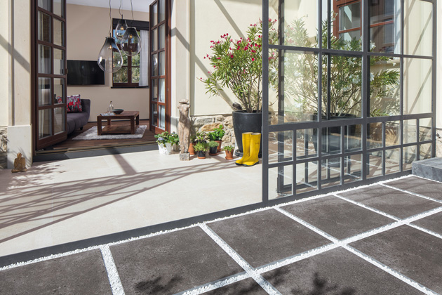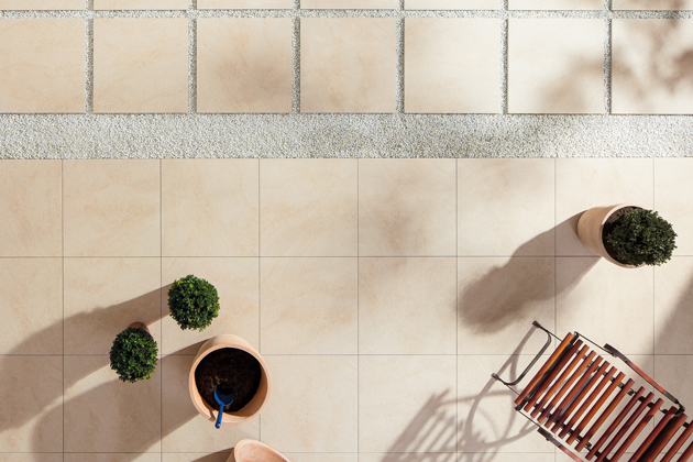 S dobou jdou nejen designy keramických podlah pro interiéry, ale i venkovní keramické dlaždice. Díky tomu, že designově odpovídají podlahovým sériím, umožňují, aby vzhled interiéru s exteriérem na sebe dokonale navazoval. Vysoce slinuté keramické dlaždice RAKO OUTDOOR 60 x 60 cm a nově ve formátu 60 x 120 cm se zesílenou tloušťkou 2 cm nacházejí využití nejen na balkonech, střechách, terasách, v okolí bazénu, v pergolách, nebo jen jako nášlapné chodníky zakomponované do travní plochy. Pokládka je jednoduchá, bez použití lepidel a další stavební chemie, navíc umožňuje vyjmutí dlaždic pro možné opravy či úpravy. Vyvýšená keramická podlaha na terčích umožňuje skrýt elektrické instalace, potrubí a kabely pod podlahou, a tím vytvořit prostor bez viditelných technických prvků.