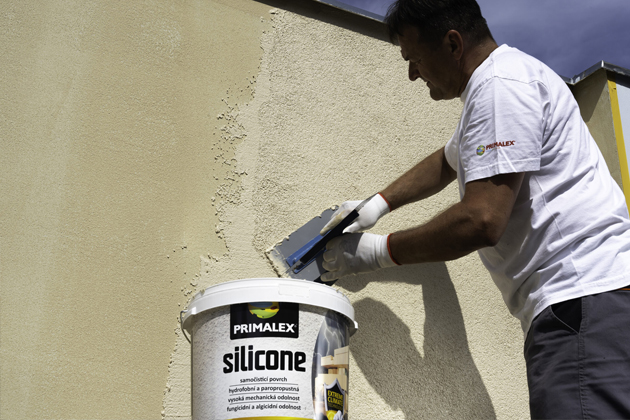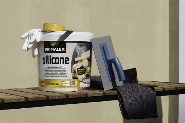Odolný a samočistitelný povrch S prémiovou roztíratelnou omítkou Primalex Silicone si fasáda domu zachová dlouhodobě čistý a reprezentativní vzhled. „Tato omítka na bázi silikonové emulze a organické disperze vytváří dekorativní strukturní vzhled (zrnitost 1,5 mm) a díky technologii EXTREME CLIMATE odolá i náročným klimatickým podmínkám. Navíc je samočistitelná – usazený prach a organické nečistoty se díky větru a dešti z omítky přirozeně samy odstraňují,“ vysvětluje Radek Kříž, technický poradce značky Primalex. Omítka Primalex Silicone také předchází vzniku řas a plísní, je paropropustná a vodoodpudivá.