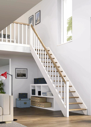 Přímé schodiště Elenie (Pertura) z lakovaného dubu, nosnost stupně 160 kg, cena 33 307 Kč, www.hornbach.cz