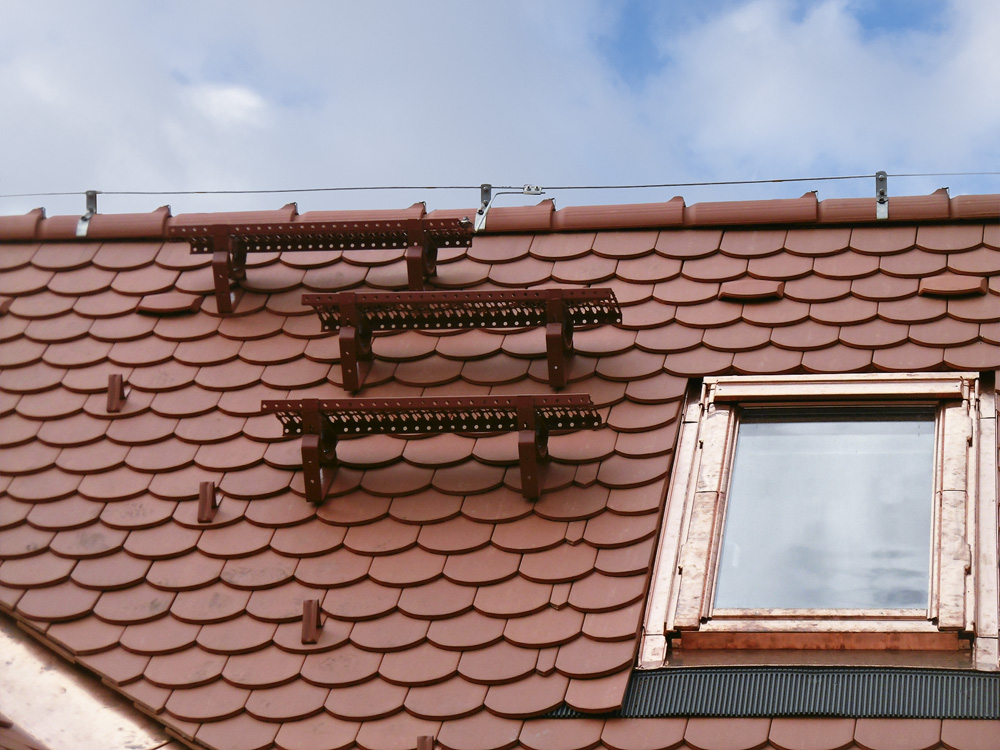 Háky se využívají jako kotevní body v kombinaci se zachycovacím postrojem na laně, ale lze je využít také pro připevnění střešních žebříků pro zajištění dočasného pohybu na střeše. Na střešní plochy se nejčastěji upevňují stoupací plošiny, zpravidla do blízkosti komína, případně solárních kolektorů, antén apod. Větší objekty s rozsáhlejšími střechami pak mívají na střechách kominické lávky se zábradlím. Naopak u menších střech nebo jako doplňkové opatření, například ke stoupacím plošinám, výborně poslouží nášlapy neboli střešní stupačky.