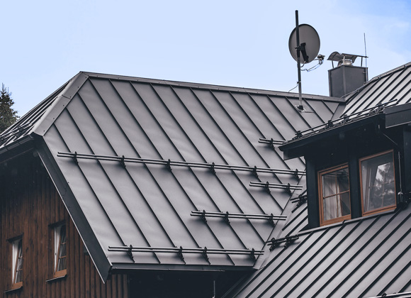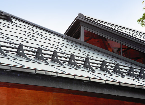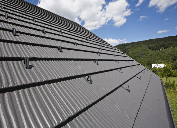 Foto: RuukkiOcelová střešní krytina Classic (Ruukki) v nejvyšší třídě kvality Ruukki 50+, opatřená tyčovým sněholamem, www.ruuki.com