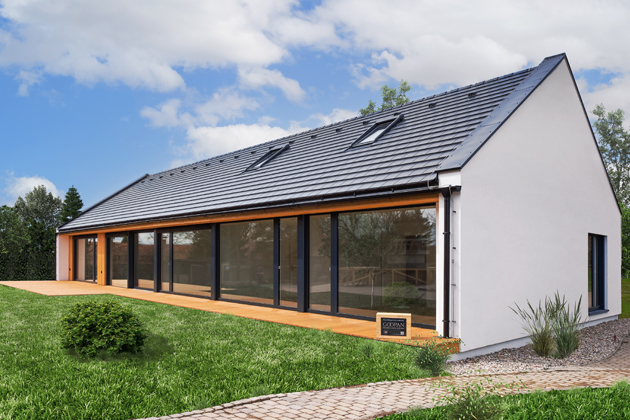 Keramická taška Contiton 12 (Tondach) je téměř plochá s jemným profilem, vytváří jednoduchý a moderní design střešního pláště s důrazem na horizontální linie, www.wienerberger.cz